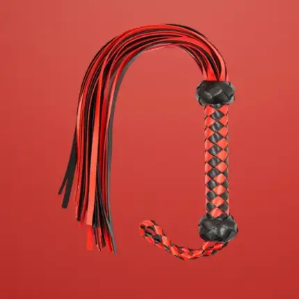 Csábító, diszkrét és mindig készen áll... Ez a fekete-piros mini flogger az a titkos kiegészítő, amit bármikor előhúzhatsz a fiók mélyéről – és sosem fog csalódást okozni.