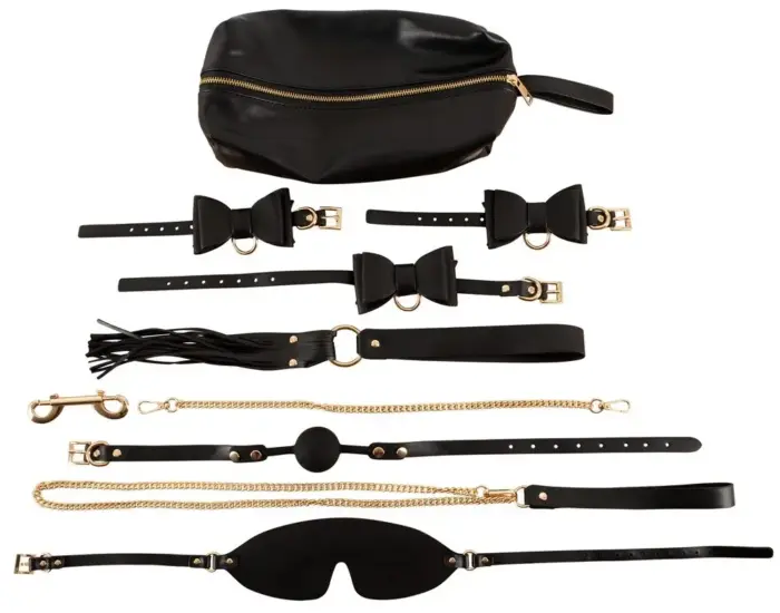 Bad Kitty – bondage szett táskában – 7 részes (fekete-arany)