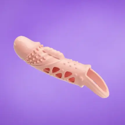 Kiváló minőségű anyagból készült erotikus kiegészítő, amely teljesen befedi a péniszt vagy vibrátort, és felhelyezése óvszerhez hasonló módon történik. A beépített heregyűrű növeli az élvezetet, míg a külső kialakítás a partner számára izgalmas stimulációt biztosít. Anyaga kissé vastagabb, így mérsékli az ingerek érzékelését, ezzel segít meghosszabbítani az aktus időtartamát.