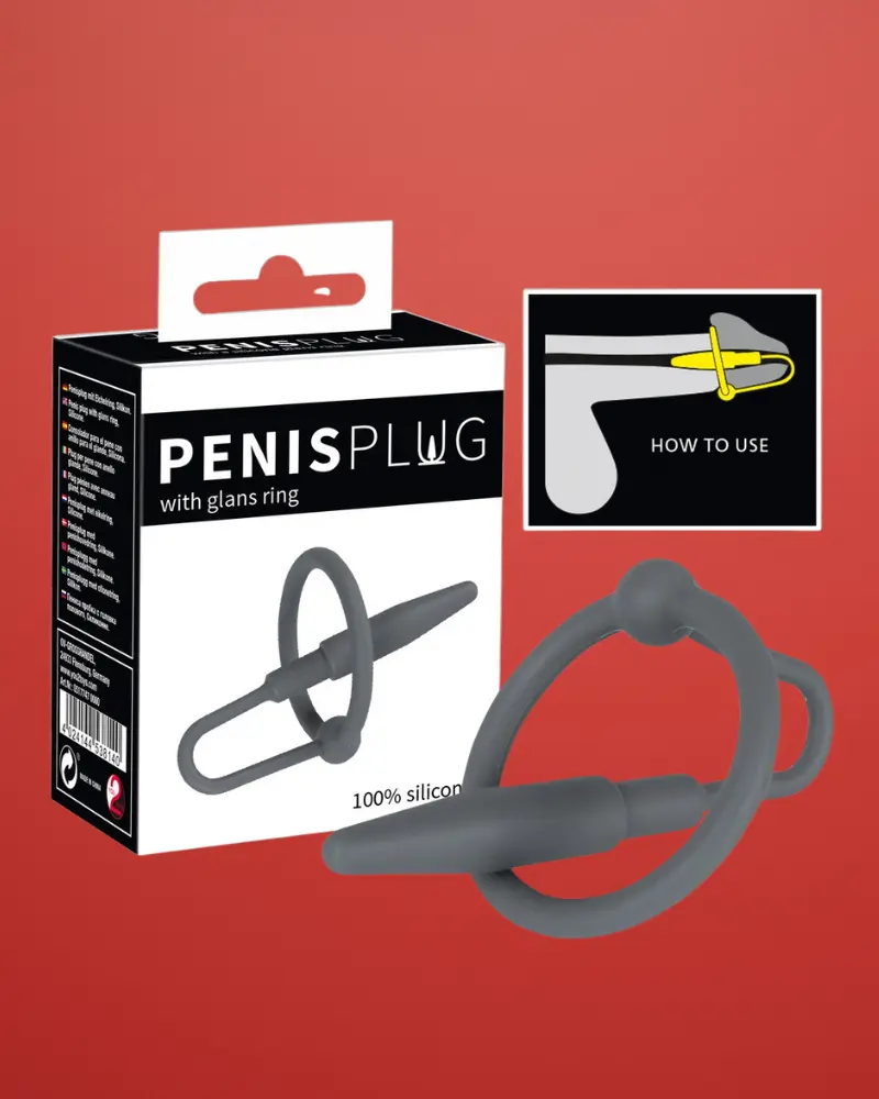 Penis Plug – Szilikon makkgyűrű hűgycsőkúppal (szürke)