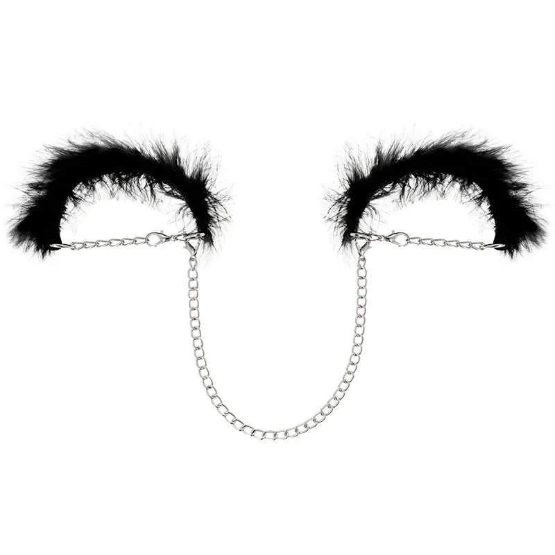 Coquette – Luxus szörös bilincs lánccal (fekete)