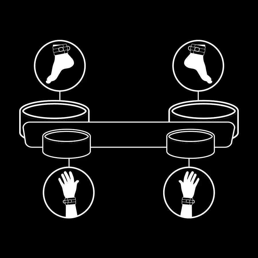 Ezek a kikötözők nagyon sokoldalúak, bárkit olyan pozícióba rakhatsz amilyenbe csak szeretnéd. A csomag tartalmazza a kikötözőt ami az ágyhoz rögzíthető, és a 4 kapcsolódási pontjának köszönhetően, szinte bármilyen méretű matrachoz ideális. Ezenkívül csuklóra és bokára való bilincseket is tartalmaz.