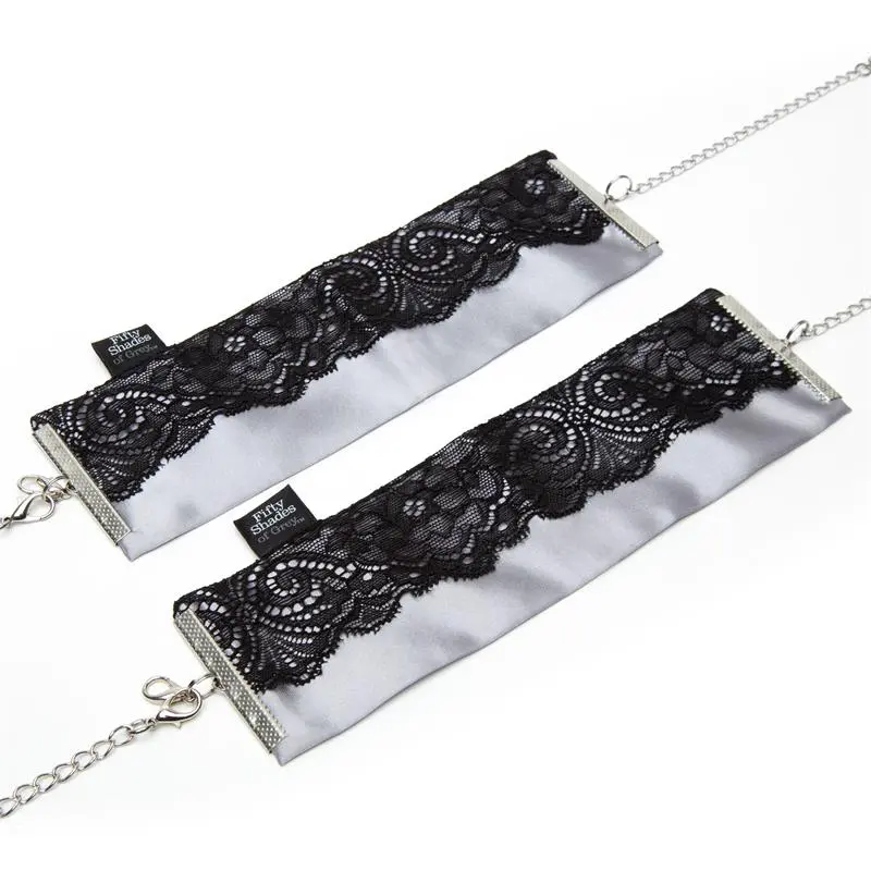 Tartsa a szeretőjét pontosan ott, ahol szertné, ezekkel a stílusos bilincsekkel, amelyeket A szürke ötven árnyalata trilógia ihletett. Puha szaténból készült, finom fekete csipkeborítással.