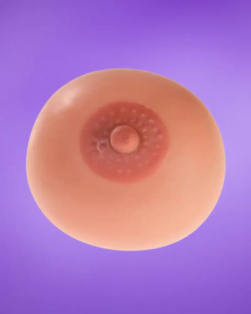 Kellemesen puha, ruganyos anyagból készülő, cici formájú labda, natúr színben, formált mellbimbóval és aprólékosan kidolgozott mellbimbó udvarral.