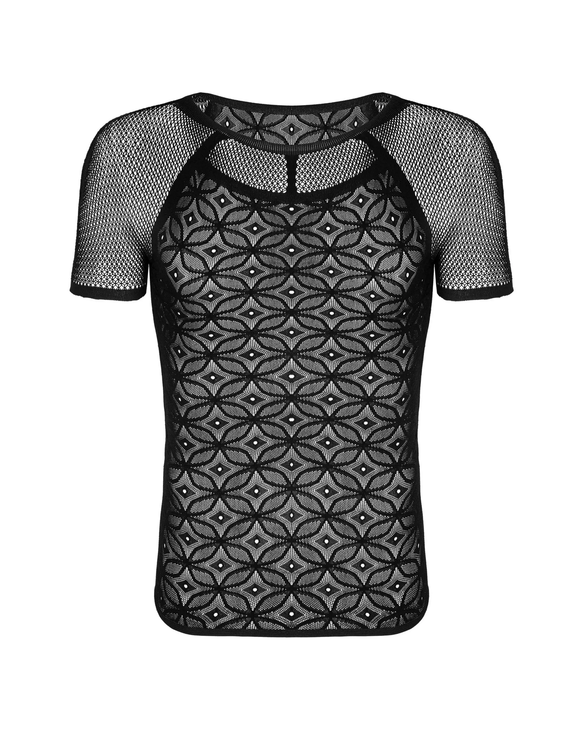 Kellemes és rendkívül rugalmas anyagból készült szexi, férfi póló. A geometrikus motívumok karaktert adnak az egésznek, a testhez simuló szabás pedig tökéletesen kiemeli a férfitest előnyeit. Tele kényelemmel amely mind a hálószobában, mind a mindennapokban működik.