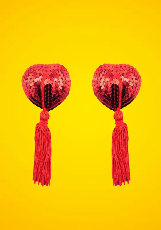 Fetish Addict Heart Sequin – Flitteres lógó mellbimbódísz (piros)