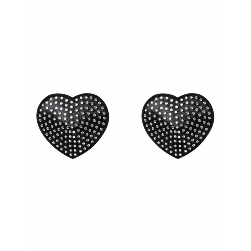 Szivet formázó, felületén apró strasszkövekkel kirakott mellbimbó dísz. Hátoldalán tapadófelülettel, mely gondos használat mellett többször is használható (tiszta bőrfelszín).