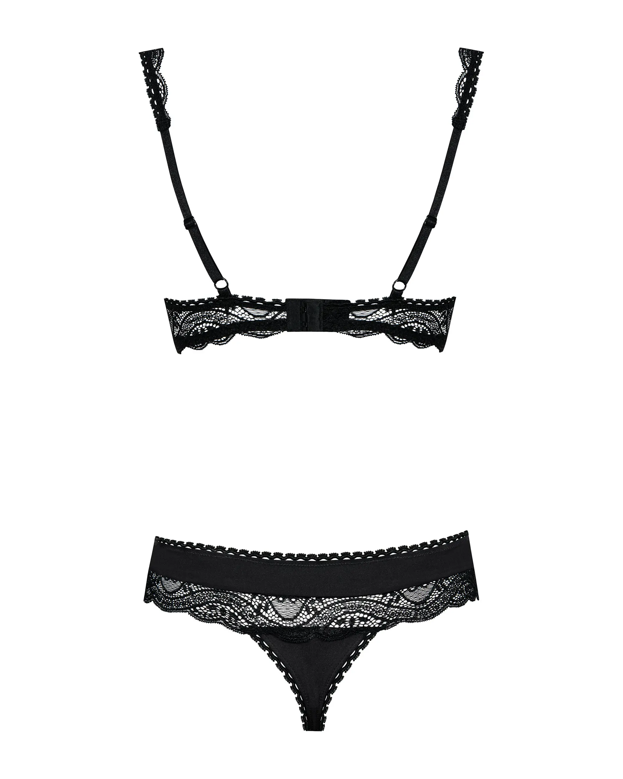 Prémium minőségű, feles melltartó/mellemelő, csipkével, elöl szaténos masnival díszítve. Hátul méretre állítható, ahogyan a vállpántok is. Fém merevítéssel a kosárban. A szett része még természetesen az alsó is, mely tökéletes harmóniában van a melltartóval.