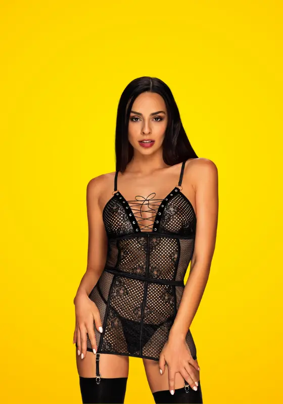 Obsessive Basitta – Harisnyatartós necc,fűzős szexi ruha bugyival