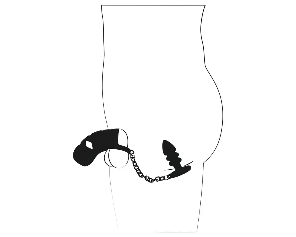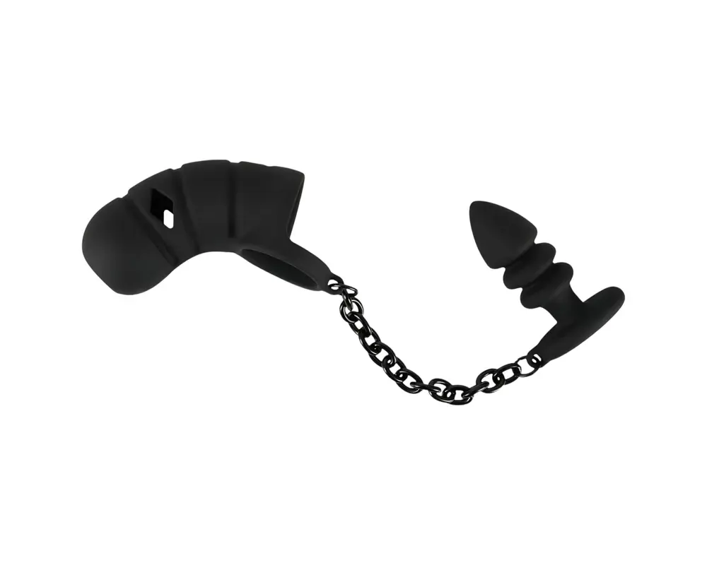 100% vízálló, kádban is használható ,anál dildóval ,az anál dildó és a péniszketrec láncon csatlakozik ,biztonságos talp ,bordázott felszín ,heregyűrűvel ,rugalmas kivitel |
