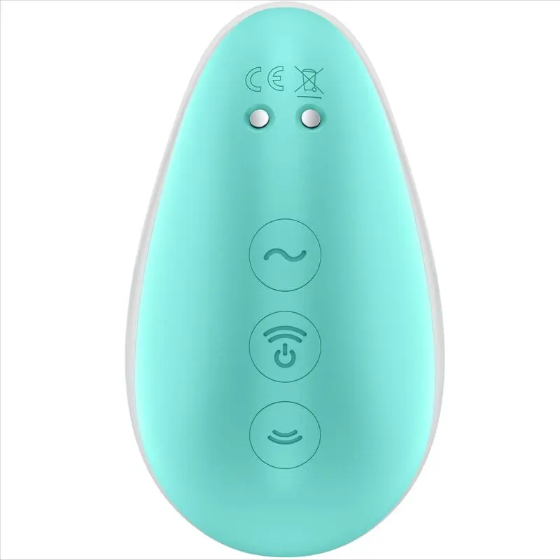 – A terméken hátul három gombot találsz. A középső gomb hosszan lenyomva tartásával (kb. 3mp) kapcsolható be- és ki a készülék léghullámos stimulálása. Ugyanezen gombbal, valamint az alsó félköríves gombbal tudod beállítani a számodra megfelelő stimulálási erősséget.