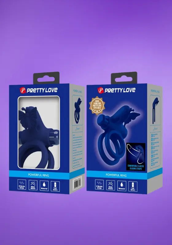 Pretty Love Jamele – Dupla péniszgyűrű pillangós csiklóstimulátorral (kék)
